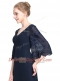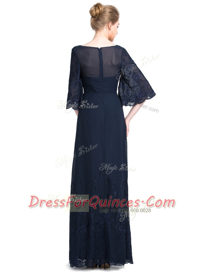 High End Floor Length Empire Half Sleeves Navy Blue Zipper