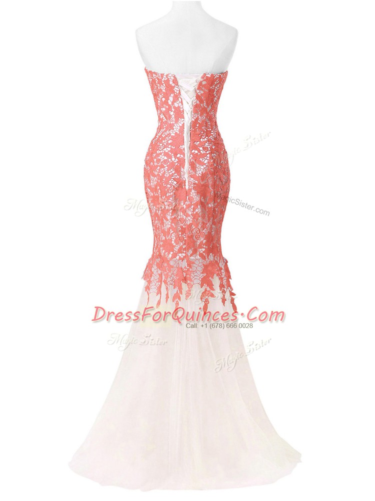 High Quality White Prom Dress Prom and Party and Military Ball with Lace and Appliques Sweetheart Sleeveless Lace Up