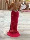 Hot Pink Column/Sheath Elastic Woven Satin V-neck Sleeveless Beading Zipper Homecoming Dress Brush Train
