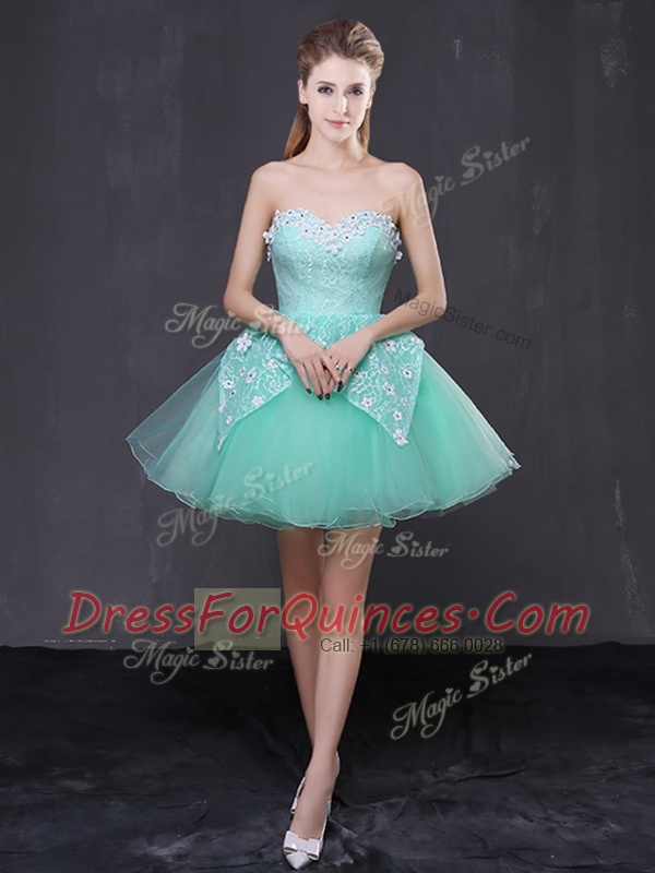 Inexpensive Organza Sleeveless Mini Length Dress for Prom and Lace and Appliques