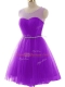 Luxury Tulle Scoop Sleeveless Lace Up Beading and Ruching Prom Gown in Purple