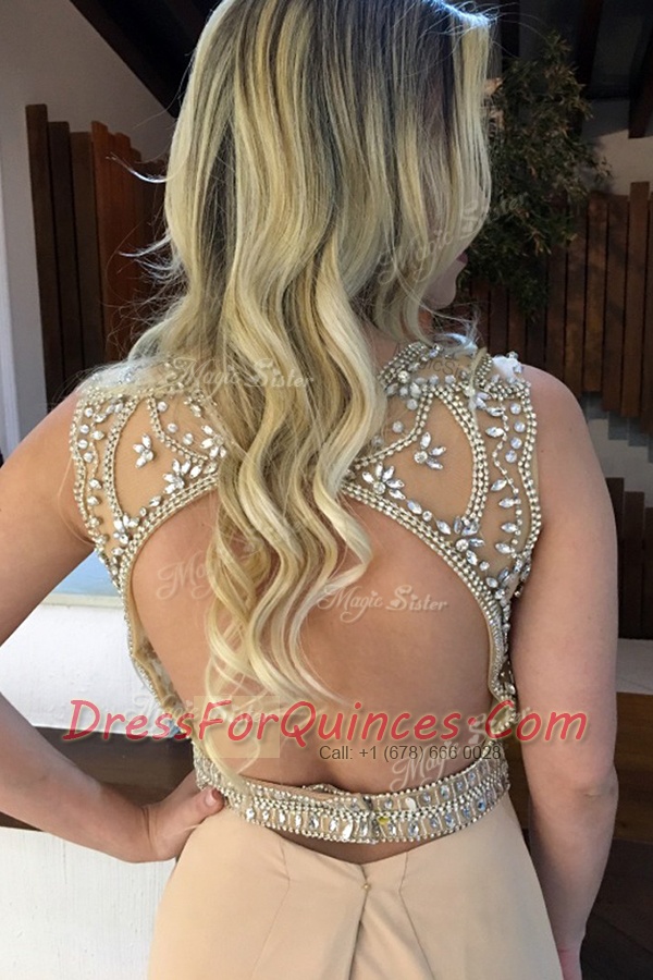 Mermaid Champagne Scoop Backless Beading Dress for Prom Sweep Train Sleeveless