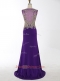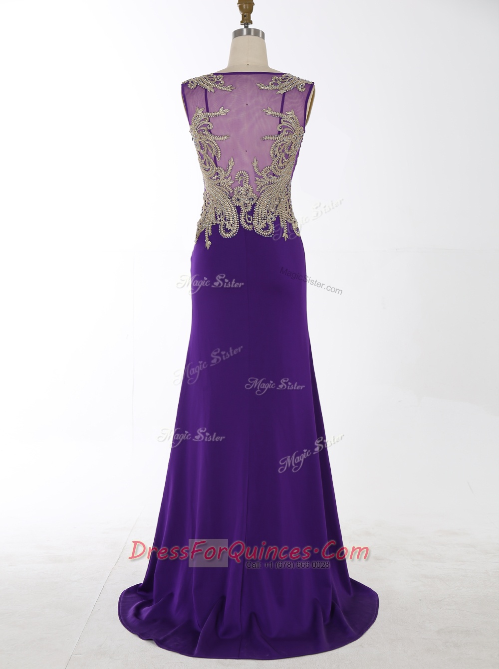 Mermaid Purple V-neck Neckline Beading and Appliques Evening Dress Sleeveless Zipper
