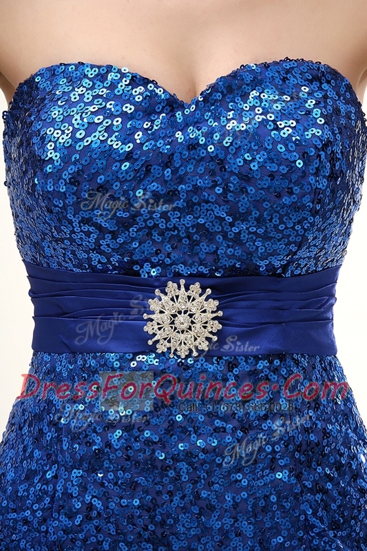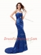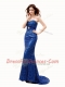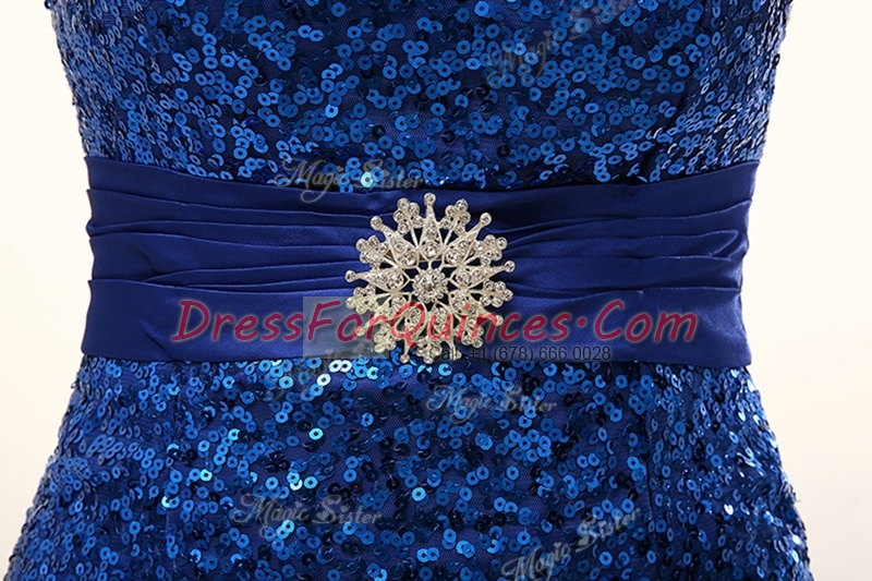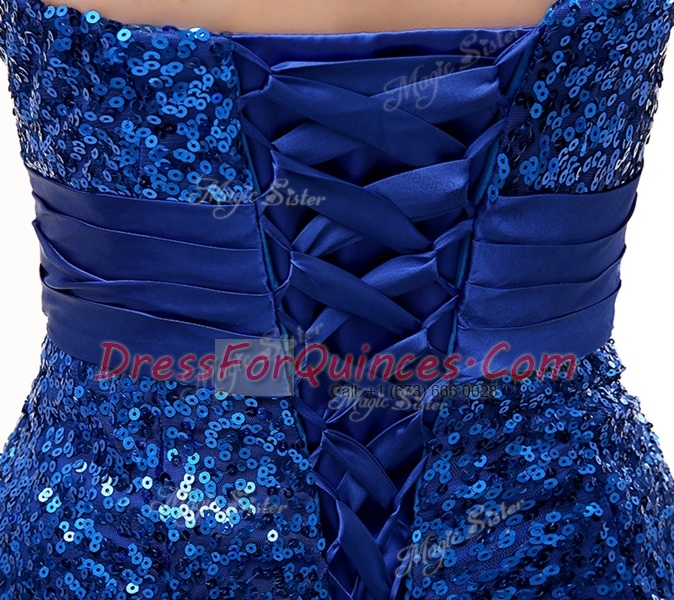 Mermaid Royal Blue Lace Up Prom Party Dress Beading and Belt Sleeveless With Brush Train