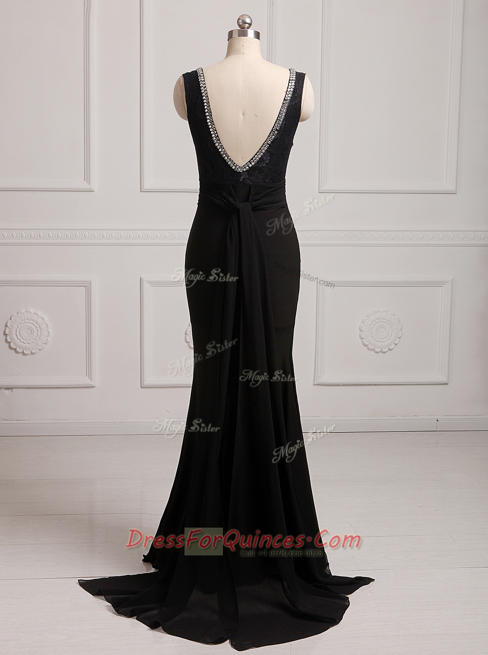 Mermaid With Train Backless Black for Prom and Party with Beading Brush Train