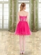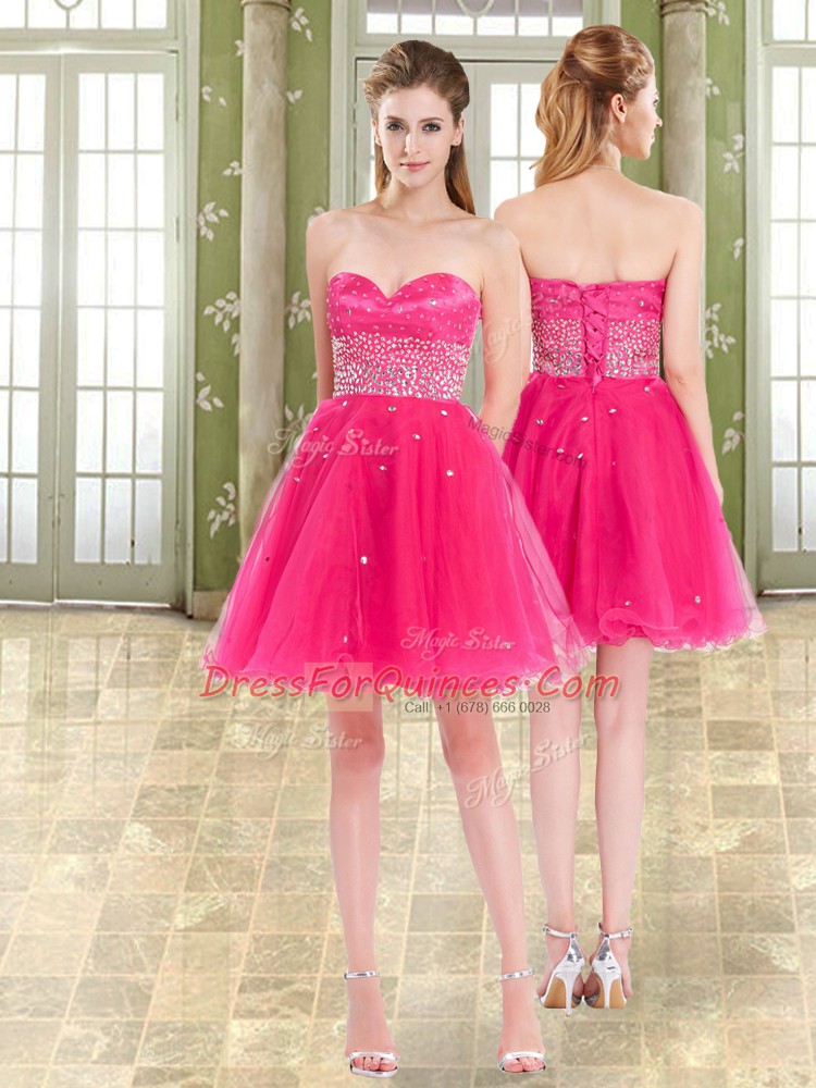 Mini Length Hot Pink Prom Party Dress Tulle Sleeveless Beading and Ruffles