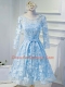 Modern A-line Dress for Prom Baby Blue Scoop Organza Long Sleeves Knee Length Lace Up