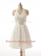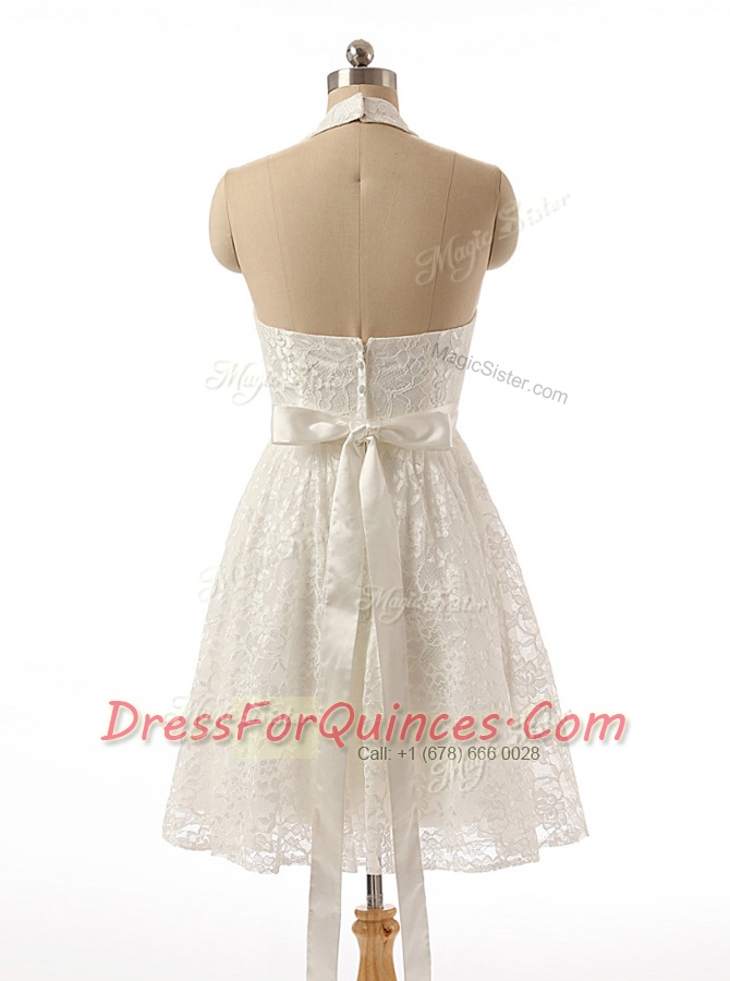 Modest A-line Prom Dresses White Lace Sleeveless Knee Length Zipper