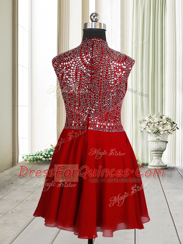 Most Popular Scoop Sleeveless Zipper Mini Length Beading and Sequins