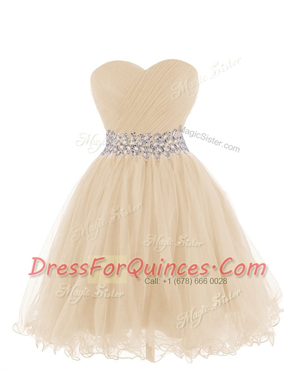 Nice Champagne Sleeveless Organza Lace Up Prom Party Dress for Prom and Party