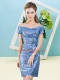 Off The Shoulder Short Sleeves Zipper Baby Blue Sequined