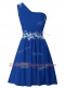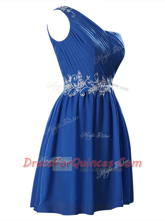 One Shoulder Royal Blue Sleeveless Chiffon Zipper Prom Dresses for Party