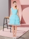 One Shoulder Sleeveless Dress for Prom Mini Length Beading and Ruffled Layers Aqua Blue Organza