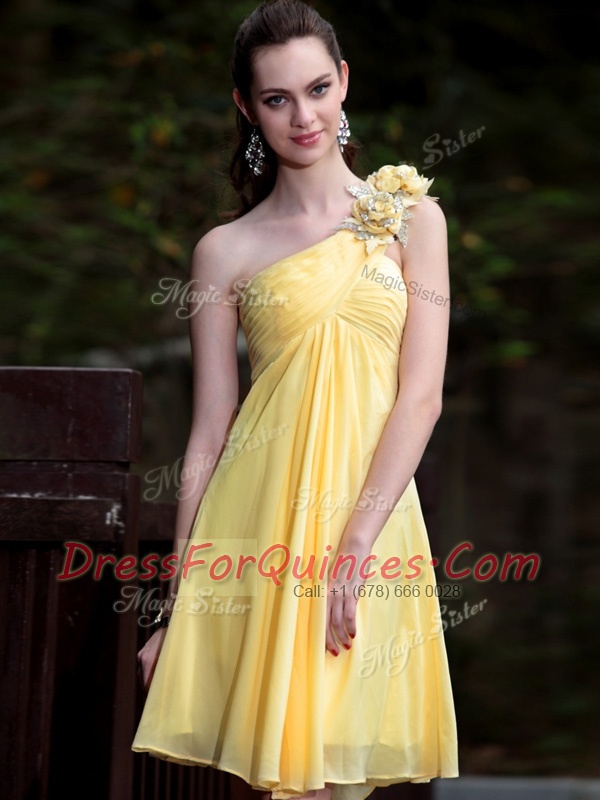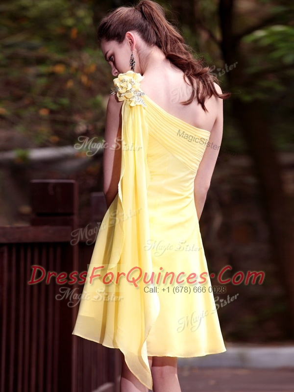 One Shoulder Sleeveless Mini Length Hand Made Flower Zipper with Yellow