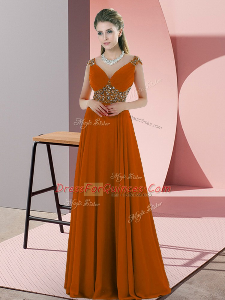 Orange Prom Dresses Prom and Party with Beading V-neck Sleeveless Backless