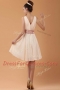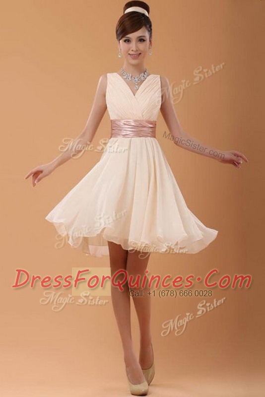 Peach Sleeveless Belt Mini Length Evening Dress