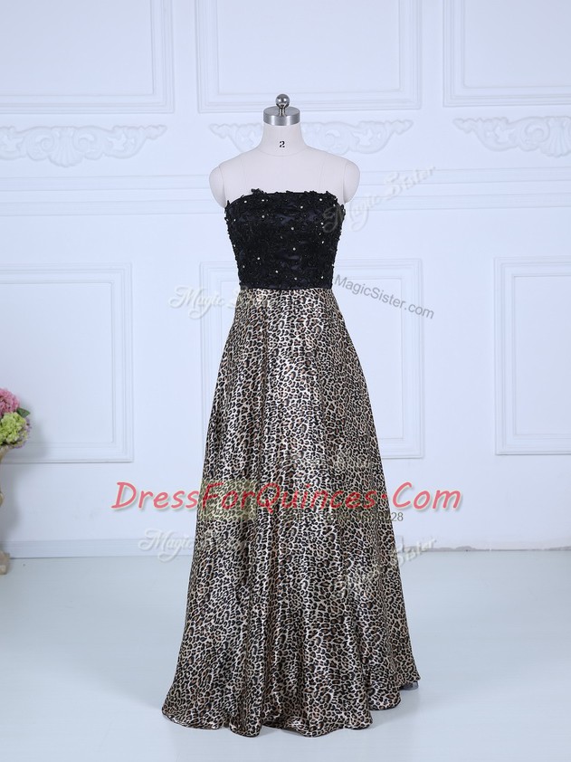 Perfect Black Strapless Zipper Lace Prom Evening Gown Long Sleeves