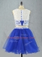 Perfect Royal Blue Scoop Neckline Lace and Appliques Prom Gown Sleeveless Zipper