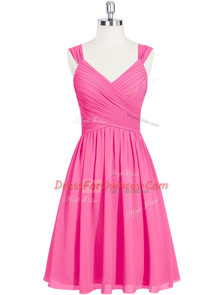 Pink Sleeveless Mini Length Ruching Zipper Prom Dress