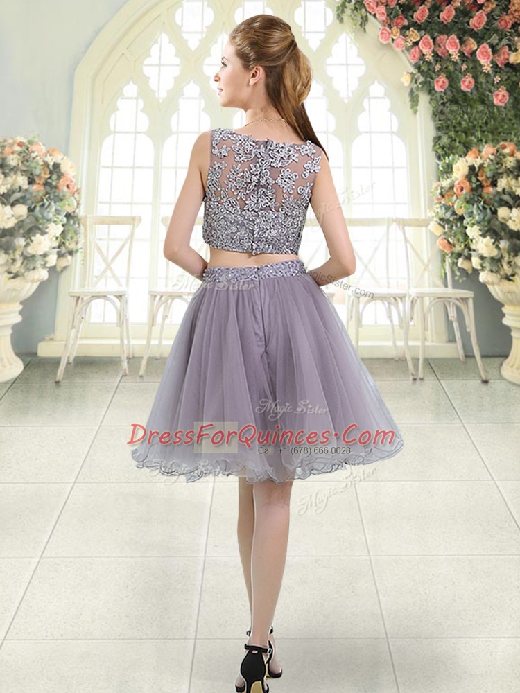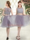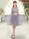 Pretty Grey Sleeveless Knee Length Beading and Lace Zipper Homecoming Dress