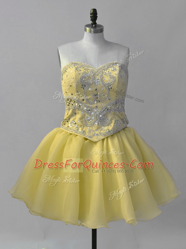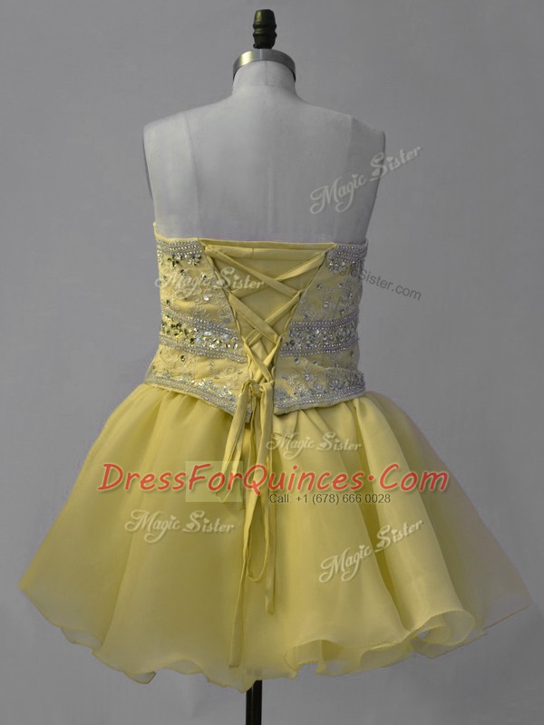 Romantic Mini Length Ball Gowns Sleeveless Yellow Dress for Prom Lace Up