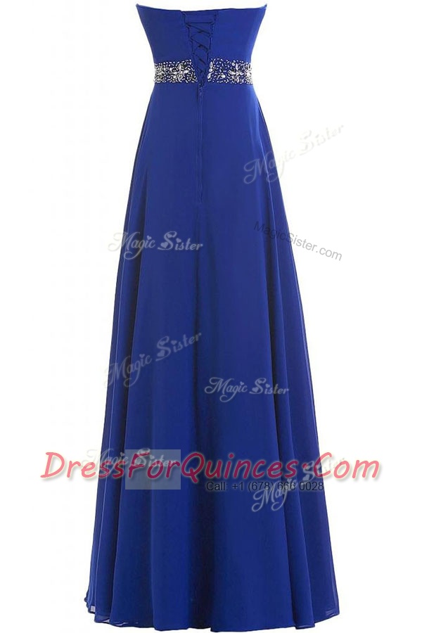 Royal Blue Lace Up Evening Dress Beading Sleeveless Floor Length