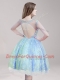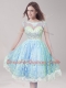 Scoop Backless Knee Length Light Blue Prom Gown Lace Sleeveless Beading