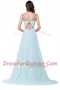 Scoop Light Blue Sleeveless Chiffon Brush Train Zipper Dress for Prom for Prom and Party