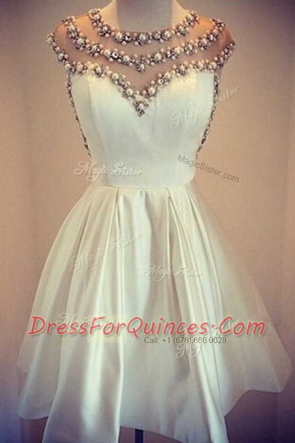Scoop Satin Cap Sleeves Mini Length Evening Dress and Beading