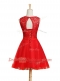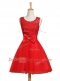 Scoop Sleeveless Tulle Mini Length Lace Up Homecoming Dress in Red with Lace and Bowknot