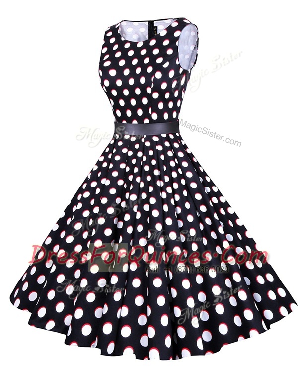Scoop White And Black Sleeveless Sashes ribbons and Pattern Knee Length Prom Evening Gown