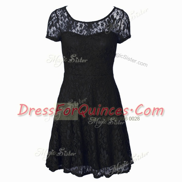 Spectacular Empire Evening Dress Black Scoop Organza Short Sleeves Tea Length Side Zipper
