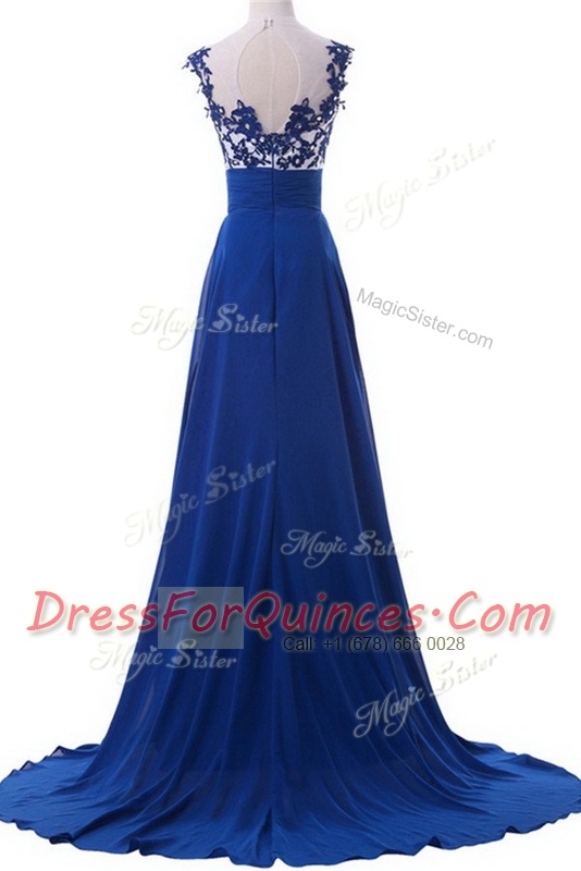 Stunning Scoop Sleeveless Chiffon Prom Gown Beading and Appliques Brush Train Zipper