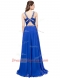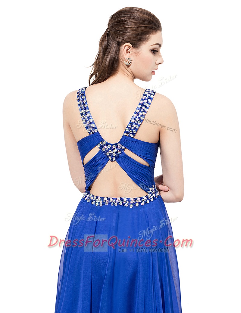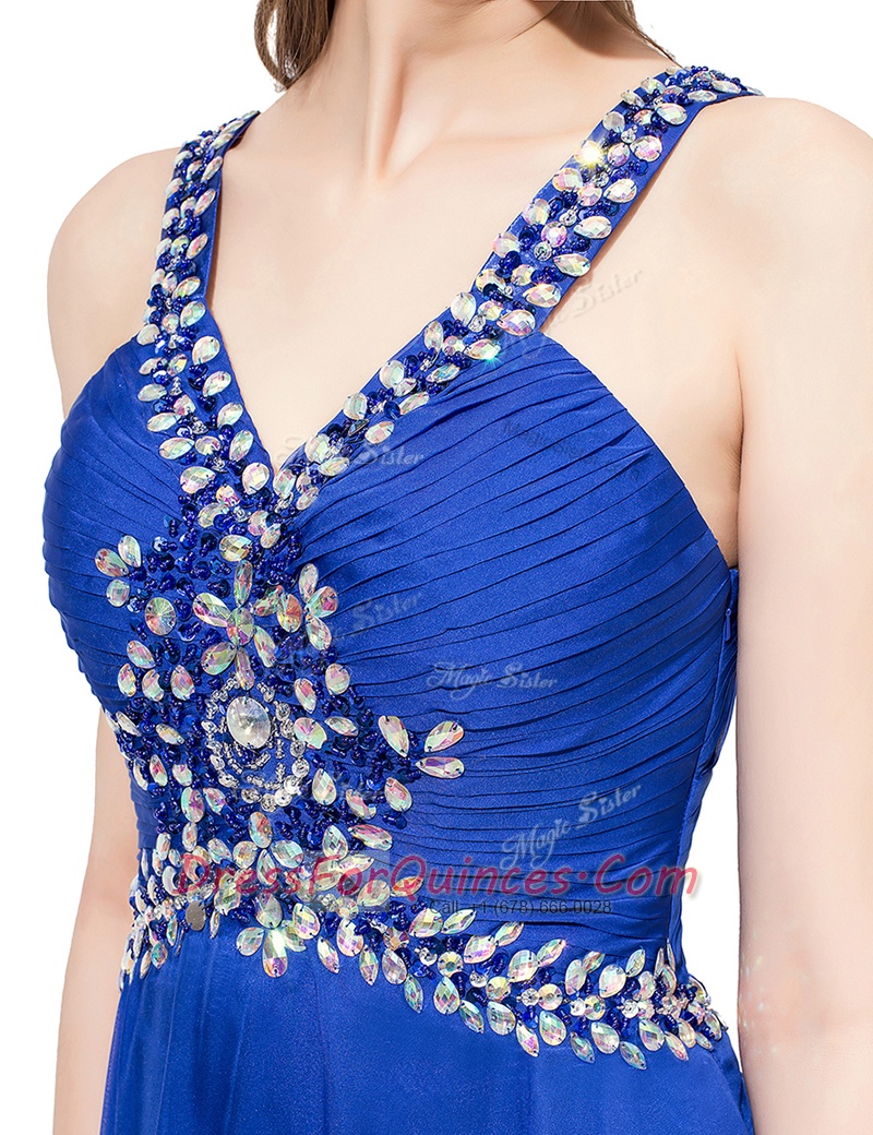 Stunning V-neck Sleeveless Sweep Train Criss Cross Homecoming Dress Royal Blue Chiffon