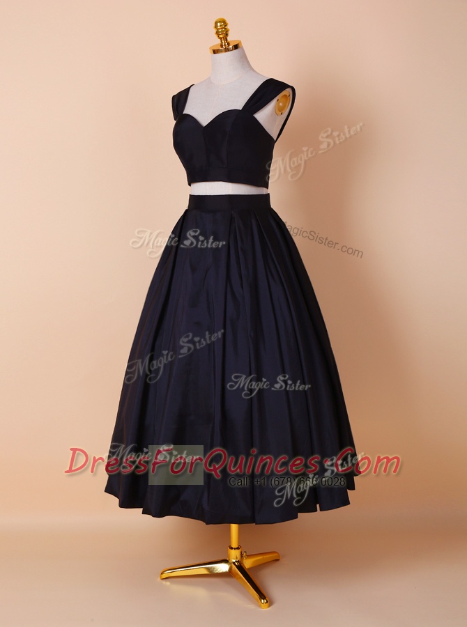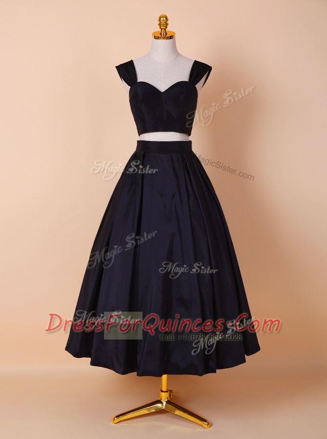 Tea Length Black Dress for Prom Straps Sleeveless Zipper