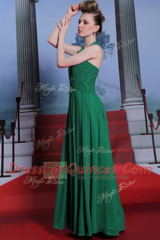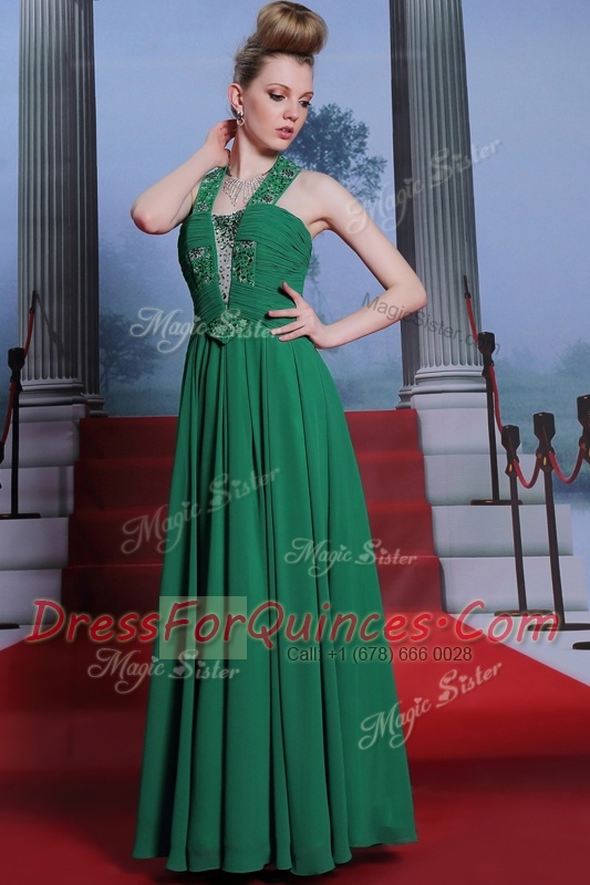Trendy Halter Top Sleeveless Zipper Prom Party Dress Teal Chiffon