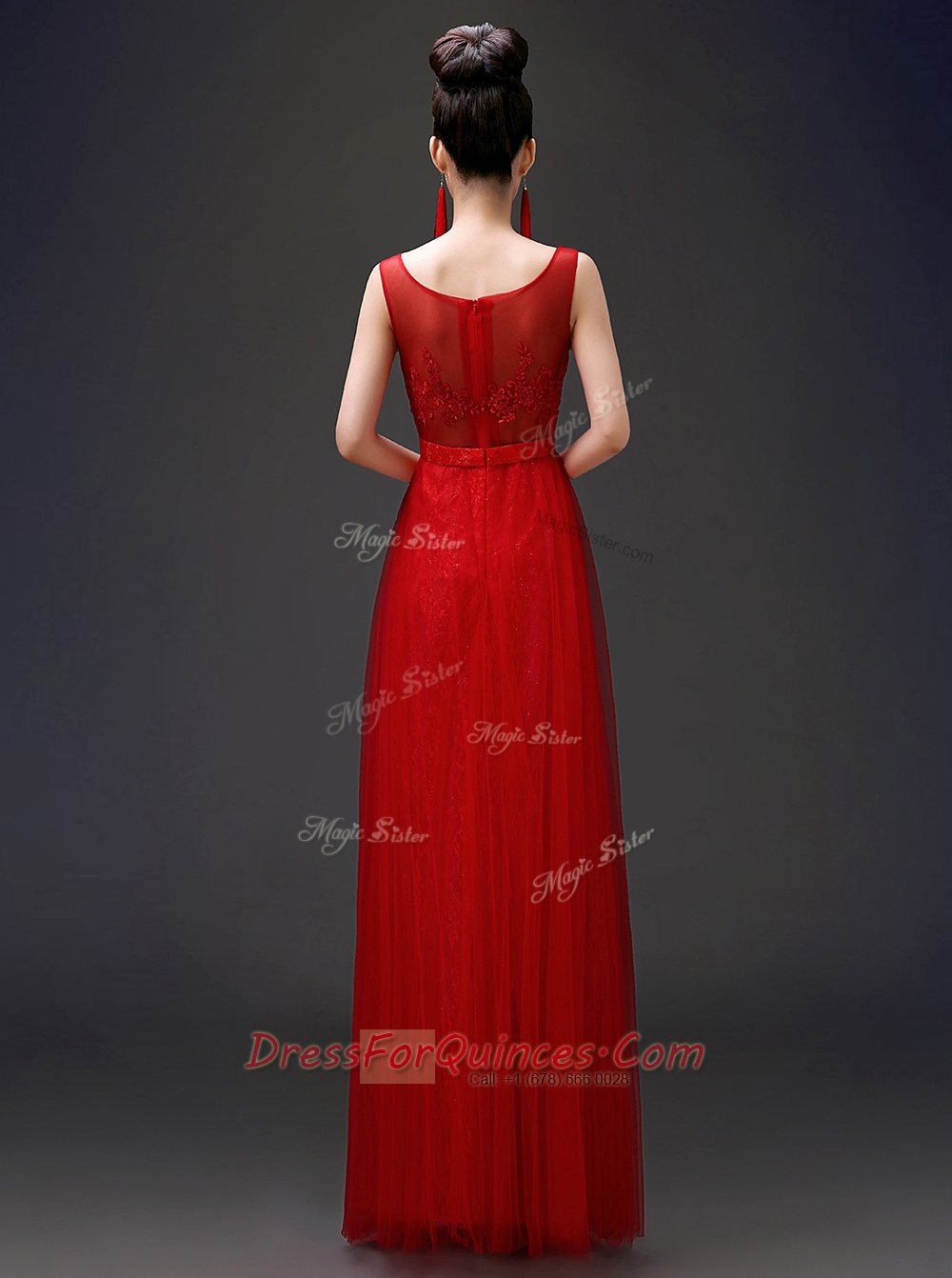 Tulle Scoop Sleeveless Zipper Appliques Evening Dress in Red