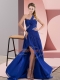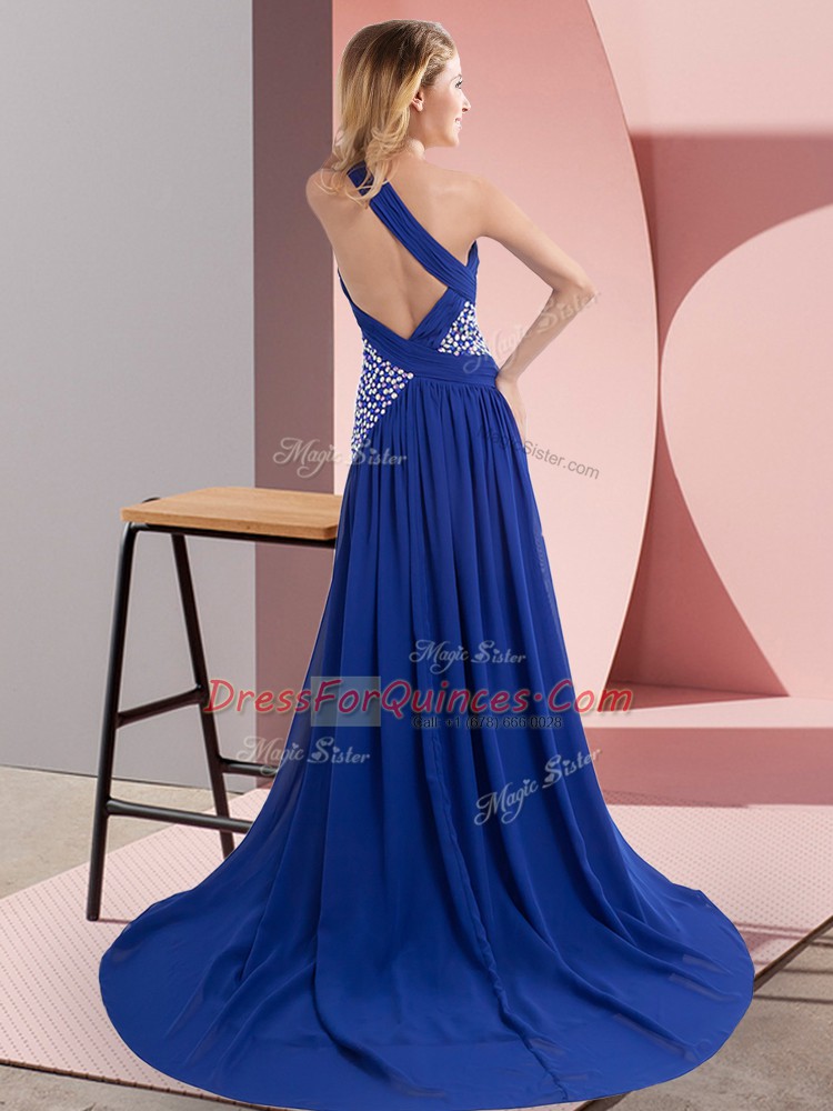 Vintage Royal Blue Column/Sheath Beading and Ruching Dress for Prom Backless Chiffon Sleeveless