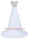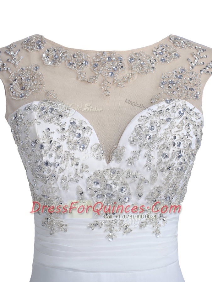 White Scoop Backless Beading Evening Dress Brush Train Sleeveless