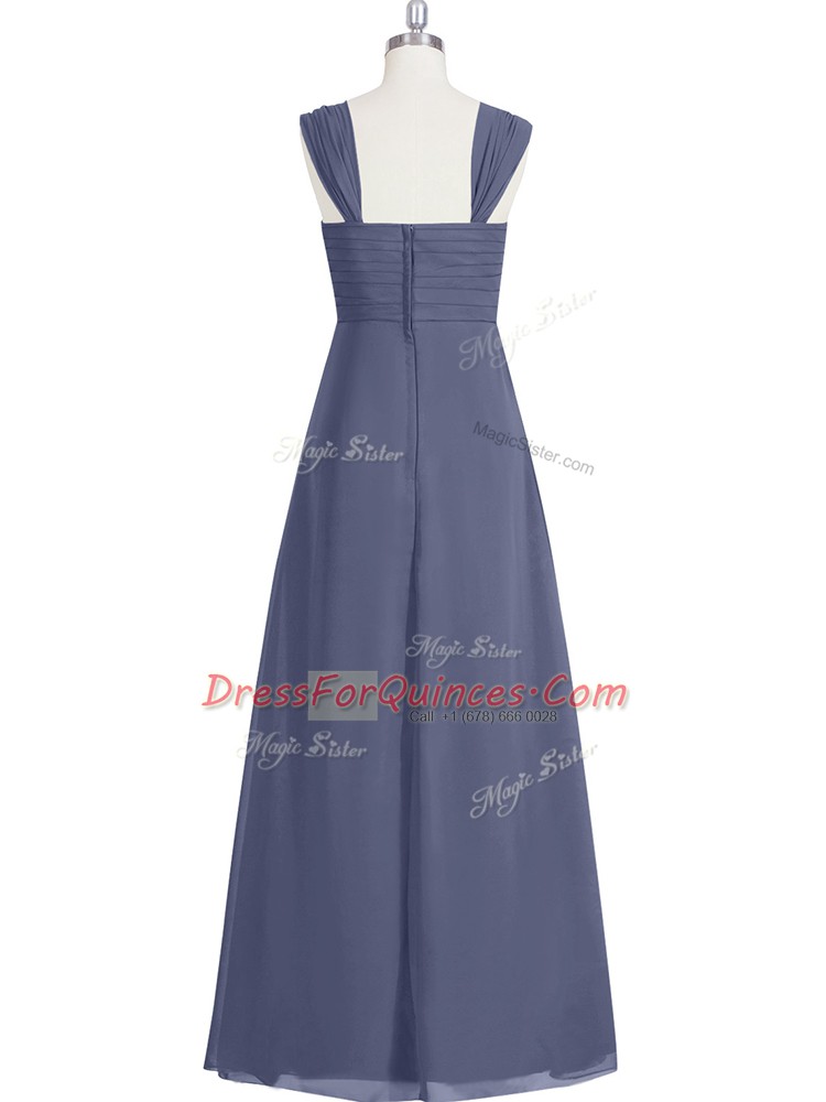 Wonderful Blue Zipper Prom Gown Ruching Sleeveless Floor Length