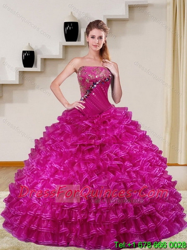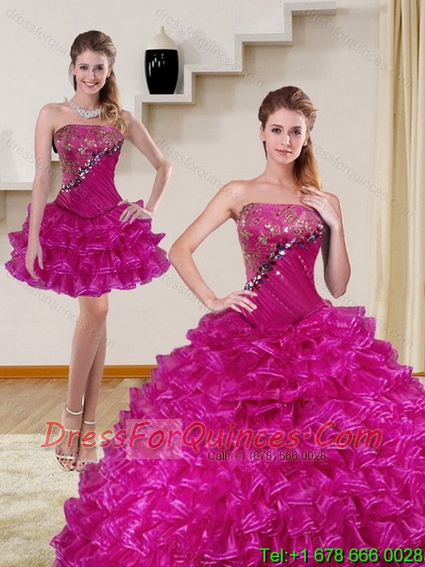2015 Detachable and Perfect Fuchsia Quinceanera Dress with Beading and Ruffled Layers