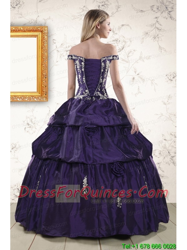 2015 Latest Off The Shoulder Appliques Quinceanera Dresses in Purple