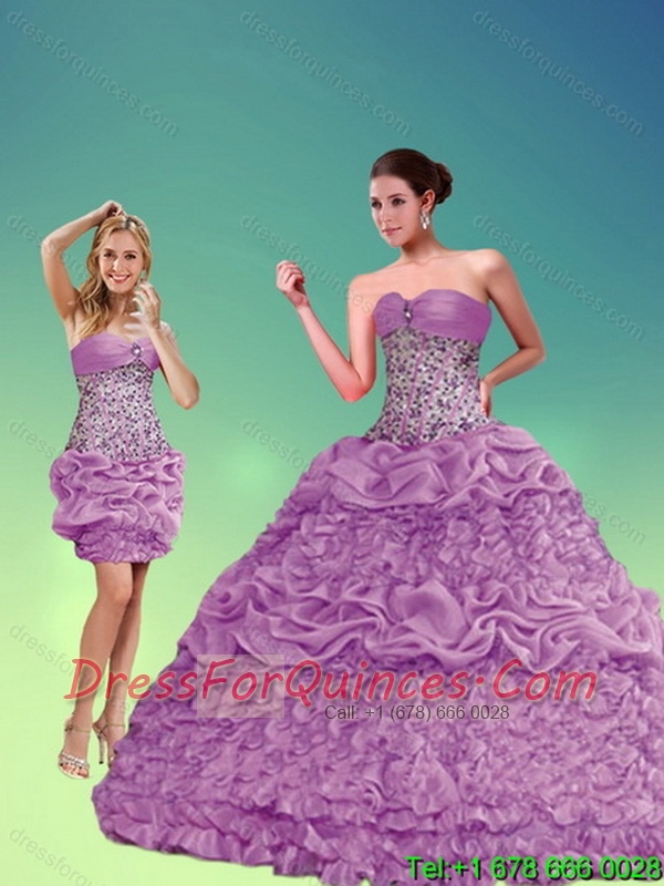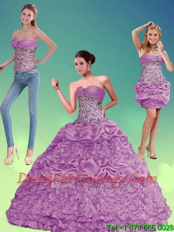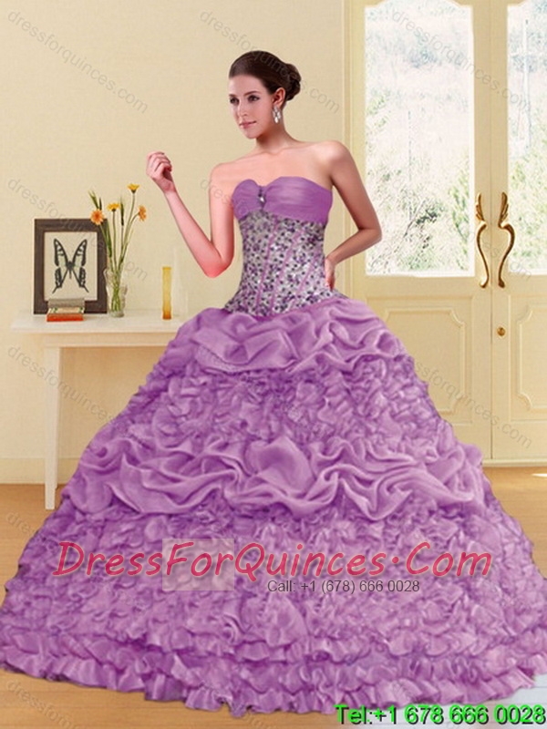 2015 Perfect Lilac Sweetheart 2015 Quinceanera Dresses with Beading and Pick Ups