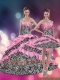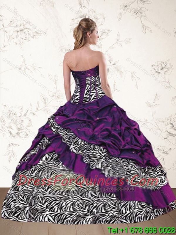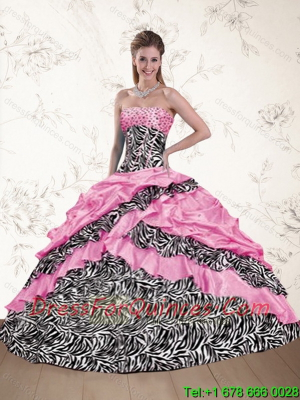 2015 Perfect Pink Beaded Zebra Printed Quinceanera Dresses with Ruffles and Pick Ups
