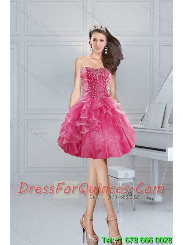 2015 Perfect Pink Dresses for Quinceanera with Beading and Ruffles