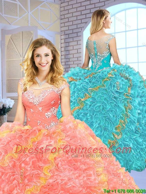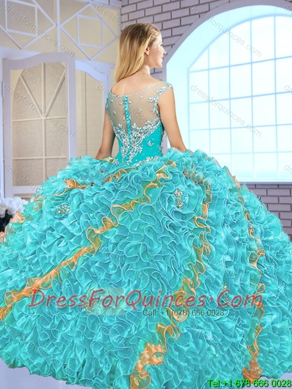 2016 Popular Beading Scoop Quinceanera Gowns with Zipper Up