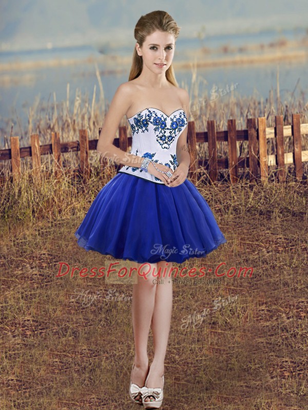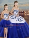 Affordable Three Pieces Quince Ball Gowns Royal Blue Sweetheart Tulle Sleeveless Floor Length Lace Up