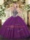 Amazing Eggplant Purple Halter Top Lace Up Beading 15 Quinceanera Dress Sleeveless