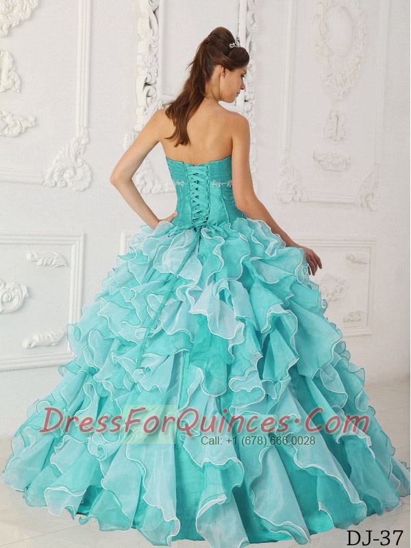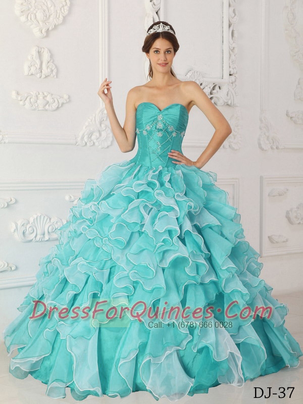 Aqua Blue A-Line / Princess Sweetheart Floor-length with Taffeta and Organza Beading