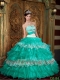 Aqua Blue Ball Gown Strapless Organza and Zebra Ruffles Quinceanera Dress